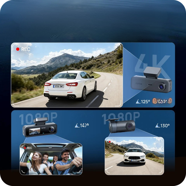Enregistre l'avant l'arrière et l'intérieur en simultanés pour obtenir une preuve complète. Filmez l’incident sous trois angles, montrer qui est responsable et récupérez facilement vos vidéos claires en 4K et 1080p.